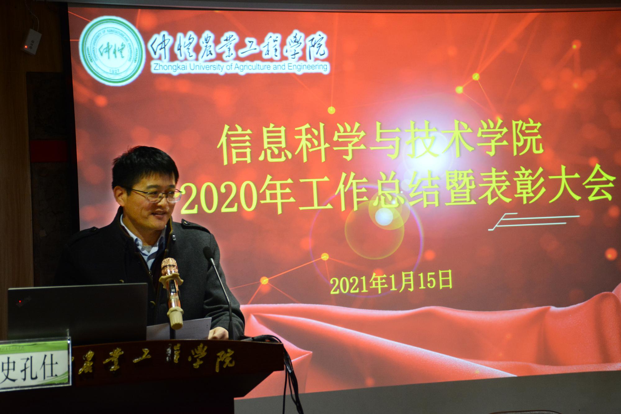 为了总结学院在2020年度的党建、教学、科研等方面的工作,统一思想、凝聚力量,我院于2021年1月15日下午在英东楼111会议室召开2020年工作总结暨表彰大会,会议由学院党总支副书记史孔仕主持,副校长朱立学、规划处处长周新华、教务处副处长洪维嘉、工会副主席邓奋敢等领导应邀出席,学院全体教师参会。