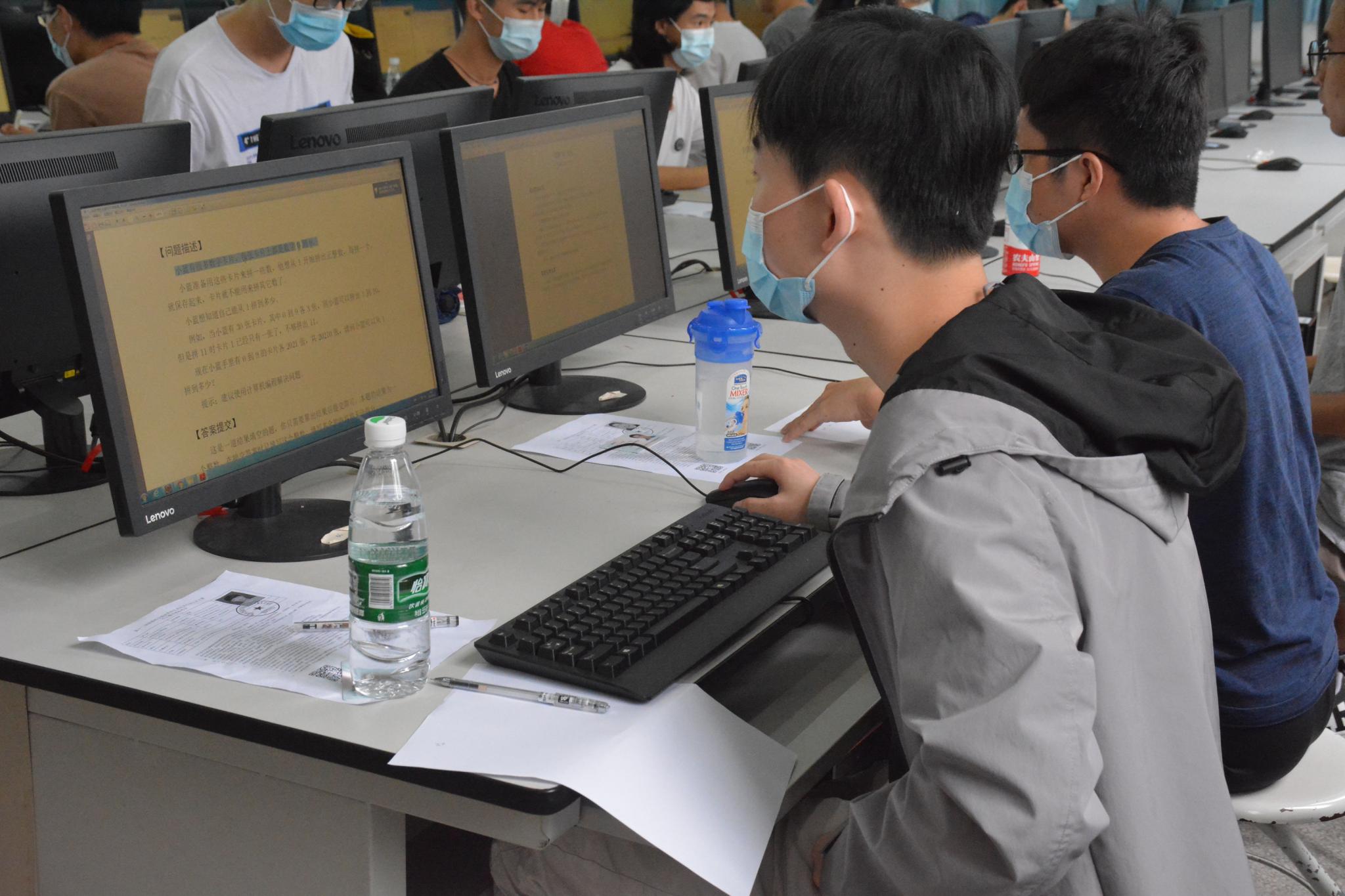 比赛开始,参赛学生登录蓝桥杯参赛入口页面,进入该平台系统进行答题。本次比赛全程4个小时,从上午9点开始一直持续到13点结束。选手们在考试过程中认真读题与思考,仔细而又快速地敲打代码,体现了他们扎实的专业基础。工作人员在比赛中及时处理个别的机器故障,确保不耽误考生的答题时间,不影响考生情绪。在工作人员和考生的积极配合下,大赛进行地十分顺利。