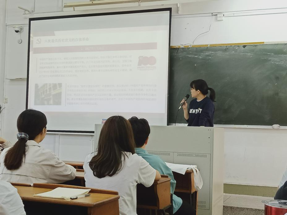 2021年4月29日上午,我院学生第四党支部在教学楼303教室开展了”百年党史——最具历史意义的六次自我革命“主题党史课,由支部书记易洋主讲,支部学生党员、发展对象参加。