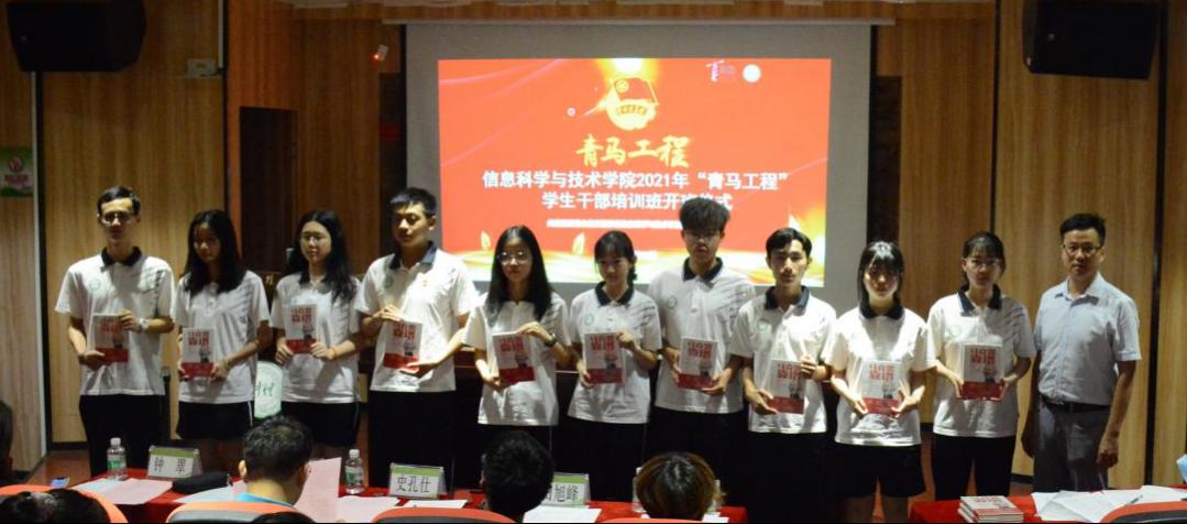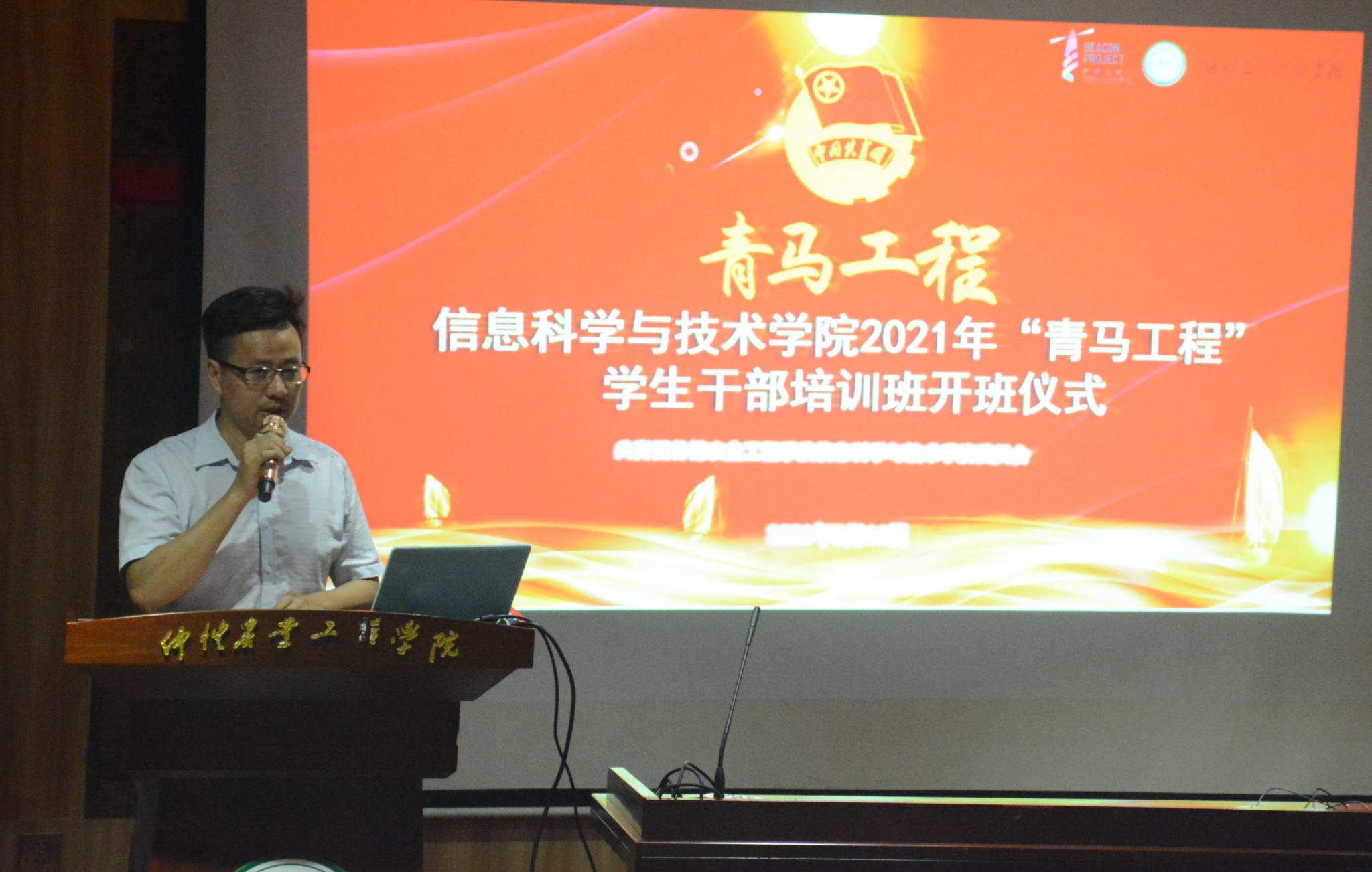 5月16日下午,我院在英东楼111举行2021年“青马工程”学生干部培训班开班仪式。学院党总支副书记史孔仕出席,学院团委书记吴南生、学生第五党支部书记田旭峰、2019级辅导员赵丽、辅导员钟翠和50名青马班成员和学生干部参加了仪式。