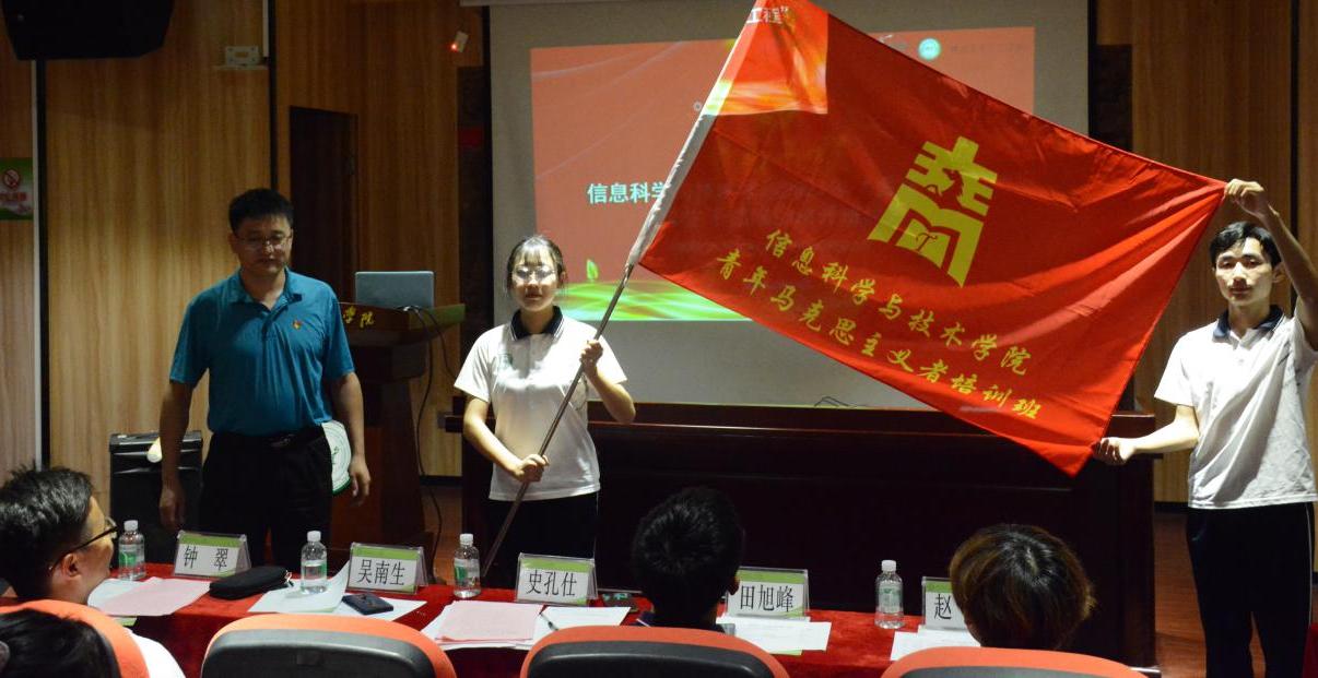 会上,史孔仕在讲话中勉励学员们要珍惜机会、努力完成青马班提出的各项要求和任务,并对在座的学员提出了三点期望:第一,努力学习,艰苦奋斗,利用青马班平台长知识增才干;第二,要树立远大的理想,将个人理想和中华民族伟大复兴联系在一起;第三,要培养创新精神,作为IT行业的学子,积极投身到中国网络强国的伟大建设中去。随后,进行了本期青马班学子赠书和授旗仪式,青马班学子从老师手里接过书籍和旗帜,神采奕奕的站在台上,眼神中充满了坚定的信念和奋斗的朝气,脸上洋溢着自豪的喜悦。