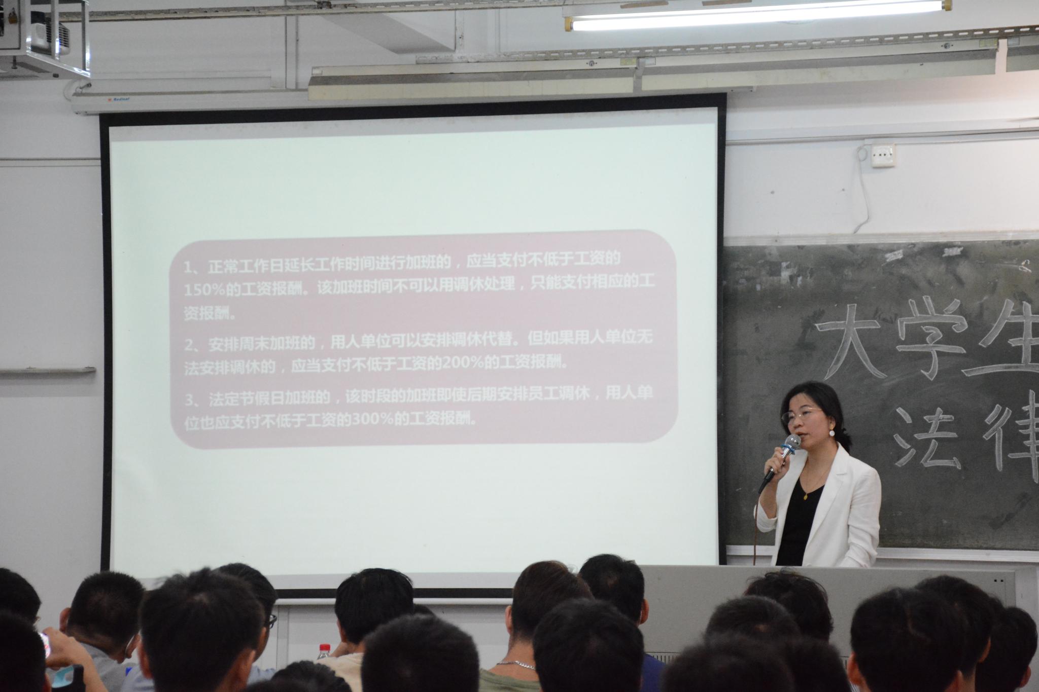 吴律师围绕主题,从常见劳动法律知识入手,就大学生求职就业各阶段存在的常见招聘陷阱、求职过程中的法律风险防范、法律风险的事后救济及应对等大学生就业过程中遇到的各类法律问题进行了讲解。她通过具体事例提醒同学们警惕人才中介陷阱、职业培训陷阱、薪酬陷阱等常见的招聘陷阱,分析了招聘陷阱产生的原因,提供了解决的途径和有效方法。她解答了毕业生长期困惑的关于试用期限延长、试用期离职、试用期合同签订,见习期与试用期、实习期的区别等具体问题的解决办法。她强调,当今大学毕业生社会经验不足,法律知识欠缺,尤其是对劳动法相关知识缺失,她希望同学们加强就业法律知识储备,提高自身的辨别能力和自我保护能力。
