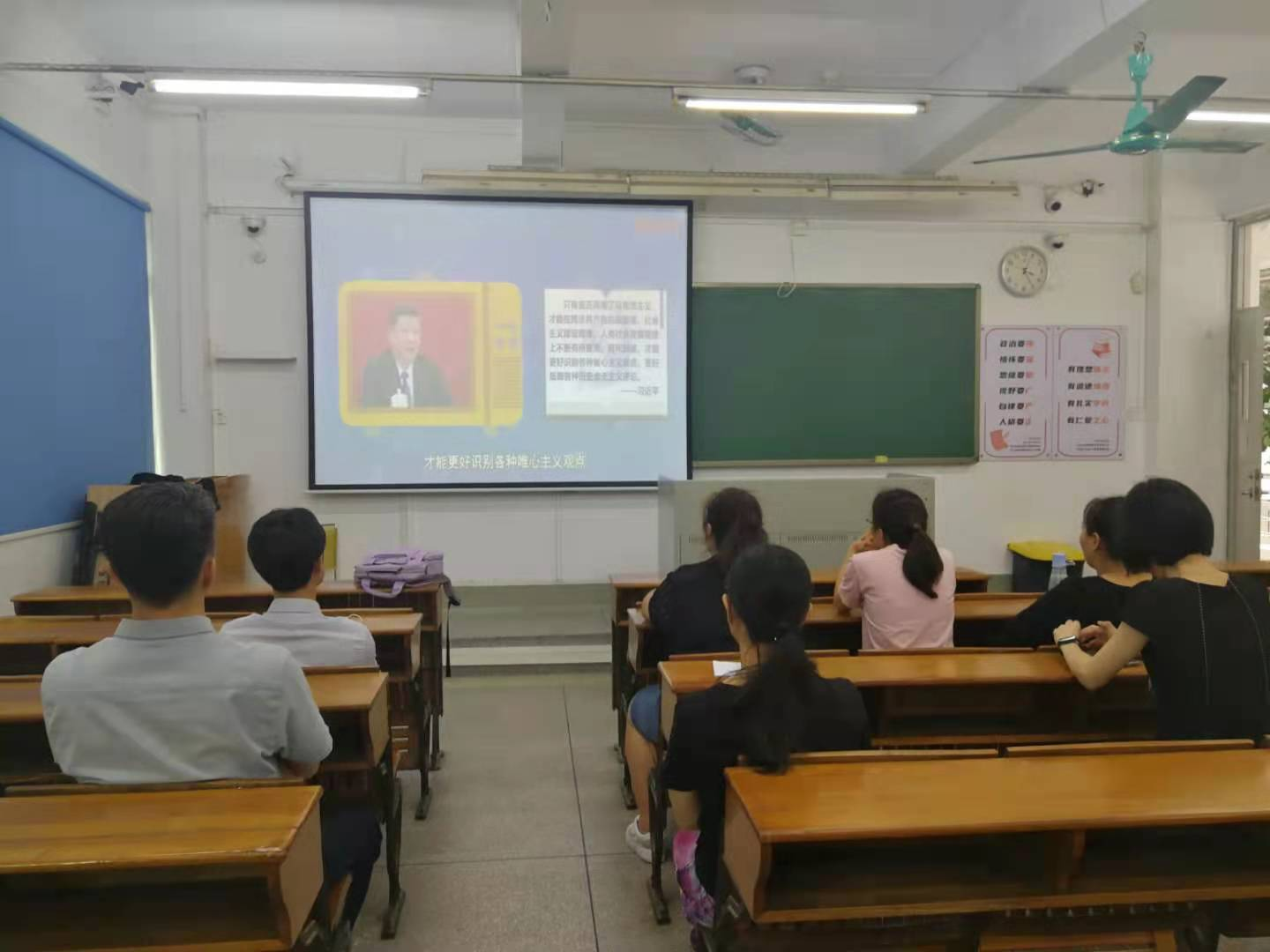 接着,教工第二党支部书记邹莹为党员老师们上了一堂题为“捍卫党史,旗帜鲜明反对历史虚无主义”的党课。她讲到要坚决抵制历史虚无主义思潮的侵染,学习知晓我们党真正的历史,这样才能在教书育人的过程中给学生正确的引导。同时作为人民教师,在工作和生活中面对错误言论,不能做和平绅士,要敢于发声,勇于亮剑,树立正确的价值观、历史观,践行一名共产党员的责任和担当。