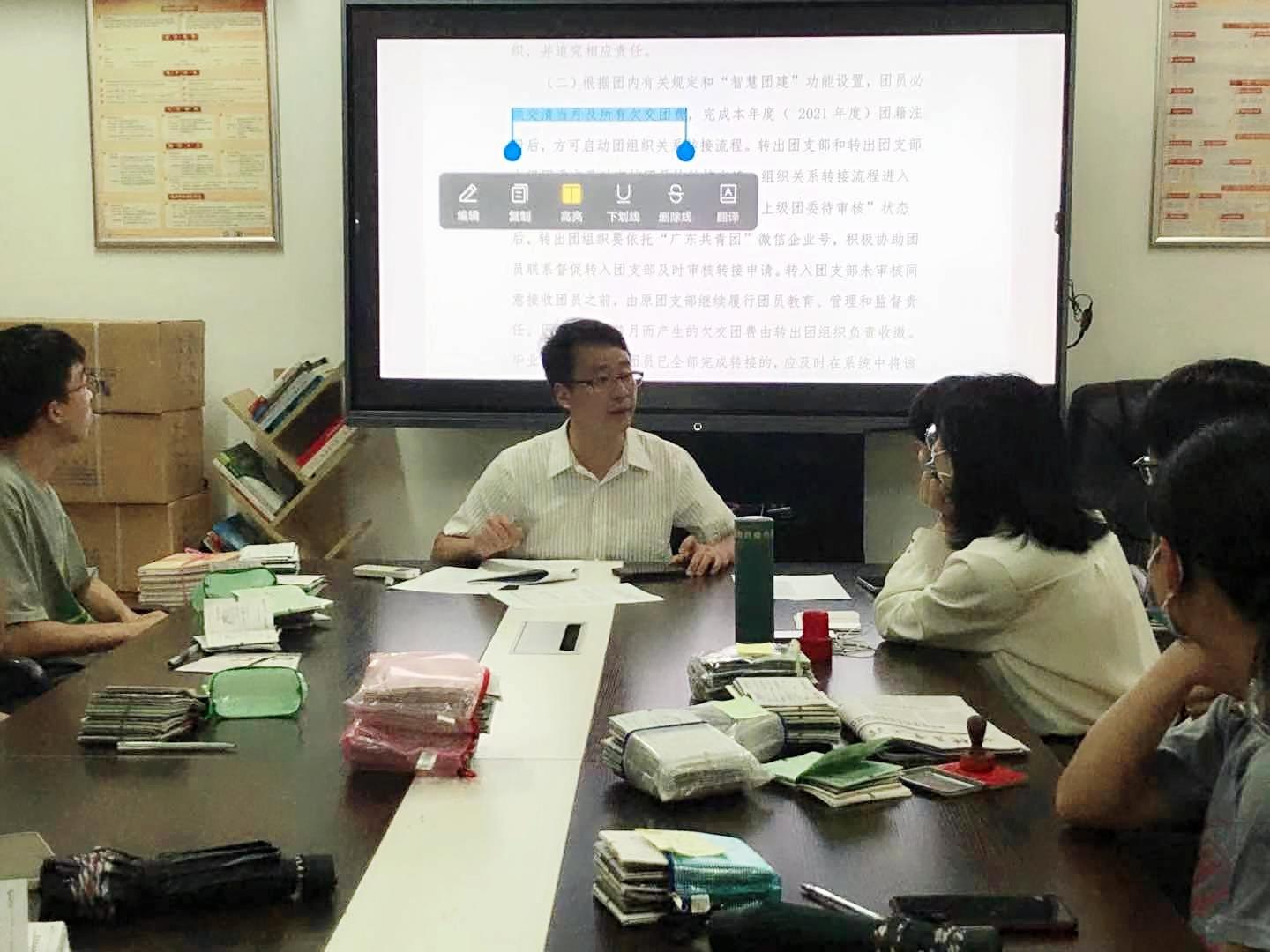 在培训会上,吴南生指出毕业生团组织转接是一项政策性强、政治要求高的工作,要求全体团干部提高站位,细致认真做好相关工作。他强调学生书记团和组织部的所有成员都要熟读《关于做好我校2021年毕业生团员组织关系转接和规范管理工作的通知》(仲团字〔2021〕12号),他就文件中“5种类型的毕业生团员组织关系转接的规范问题”进行了逐一解说,同时强调要留意各工作的时间节点,按时按量的完成工作。