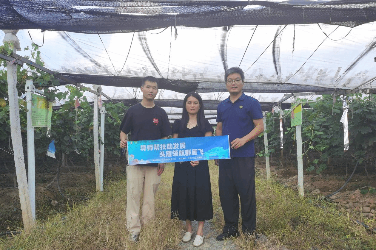 近日,仲恺农业工程学院头雁导师刘同来、杨汉章一行赴河源市和平县大坝镇水背村,对头雁学员、卓越原生态专业合作社负责人卢婷开展回访指导,重点围绕葡萄种植技术优化、线上线下销售拓展、品牌建设及项目申报的信息化应用等方面,为合作社提供精准化、数字化支持。