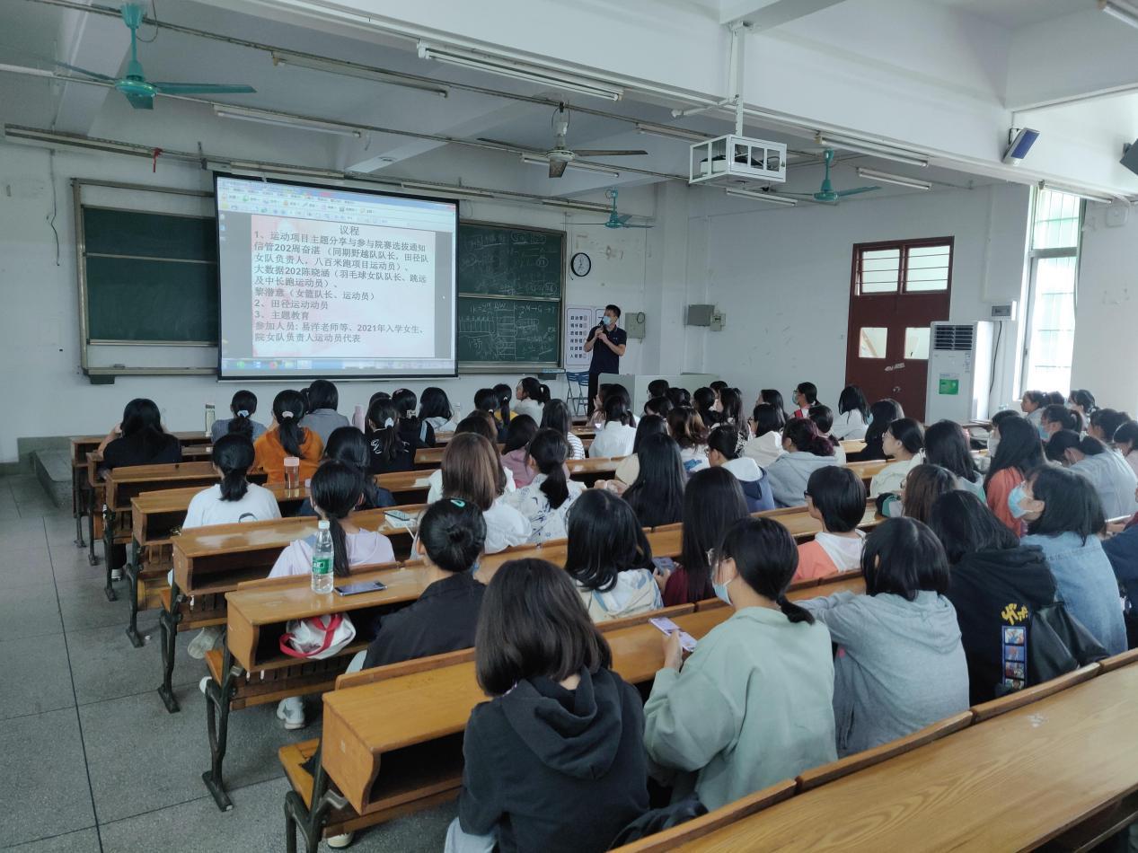 会上,刘勇阐述了体育锻炼对于大学生活的重要作用,并详细介绍了往年信科院在校运会上的总体表现情况,号召2021级女生积极参加本次学院运动会,通过选拔出种子选手代表学院参加校运会并争夺荣誉。