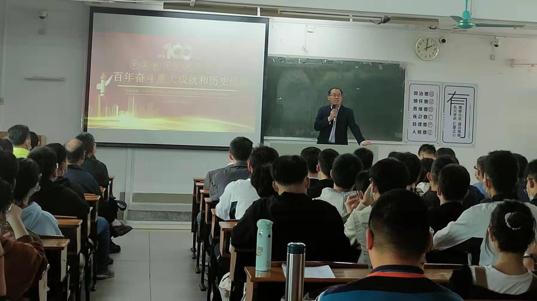 为深刻领会中国共产党百年奋斗的历史经验,从中汲取奋进新时代新征程的力量,2021年12月14日下午,我院在教学楼308教室举办学习党的十九届六中全会精神党课,学院院长刘双印进行担任主讲,教工第二党支部、学生第三党支部、学生第四党支部的全体党员共八十余人参加学习。