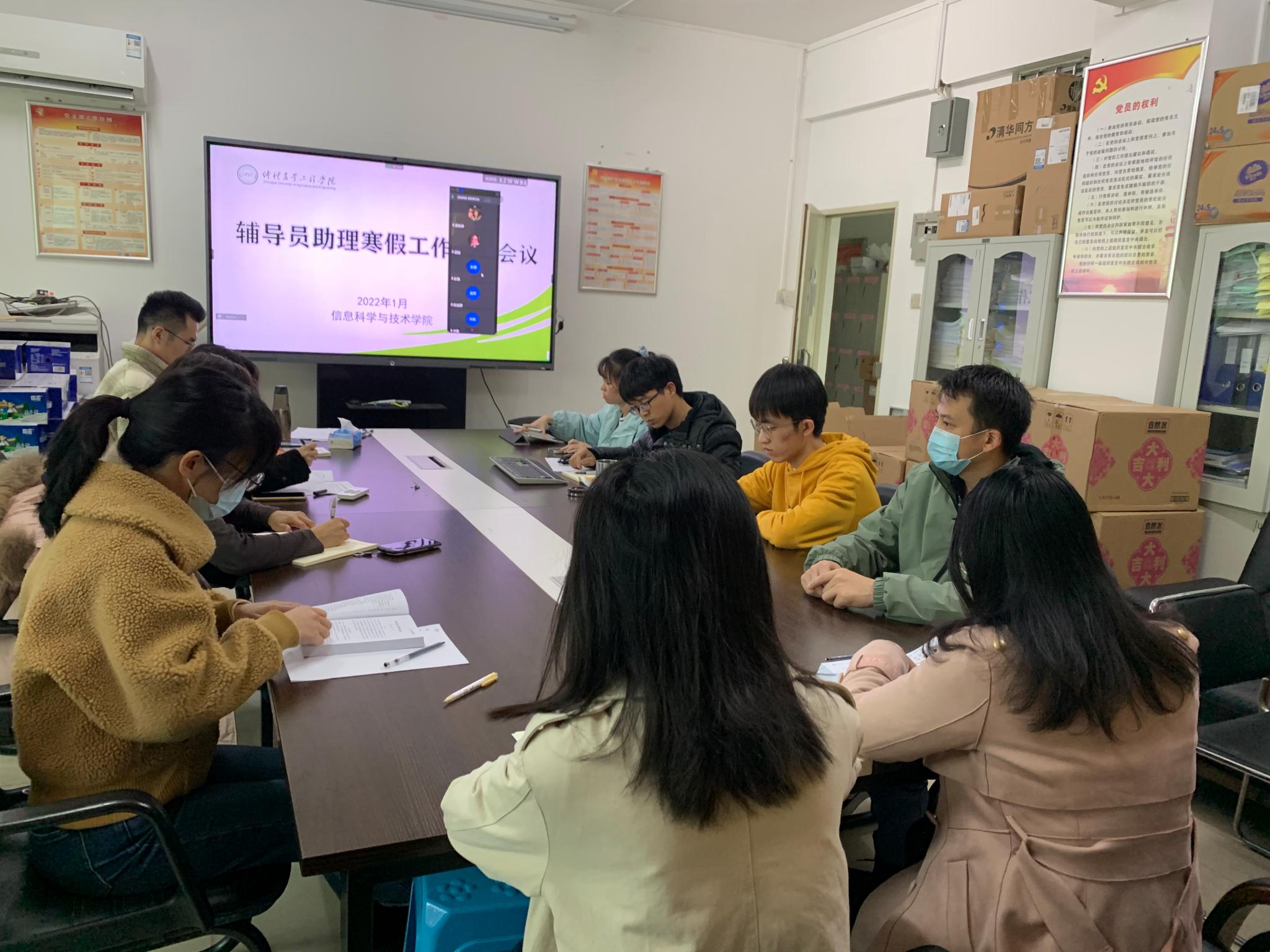 2022年1月13日下午,我院在教学楼东312会议室召开辅导员助理培训会,学院全部辅导员及辅导员助理参加此次会议。