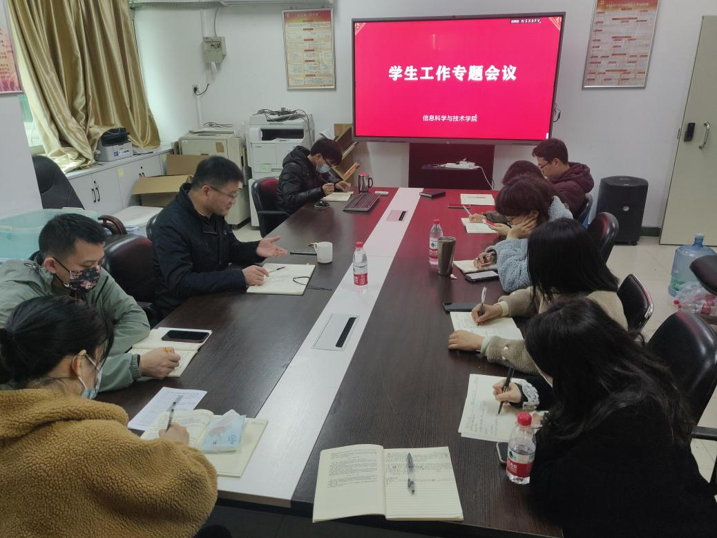 2月18日下午,我院在教学楼312会议室召开2022年春季新学期学生工作专题会议。会议由学院党总支副书记史孔仕主持,学院全体辅导员参加。