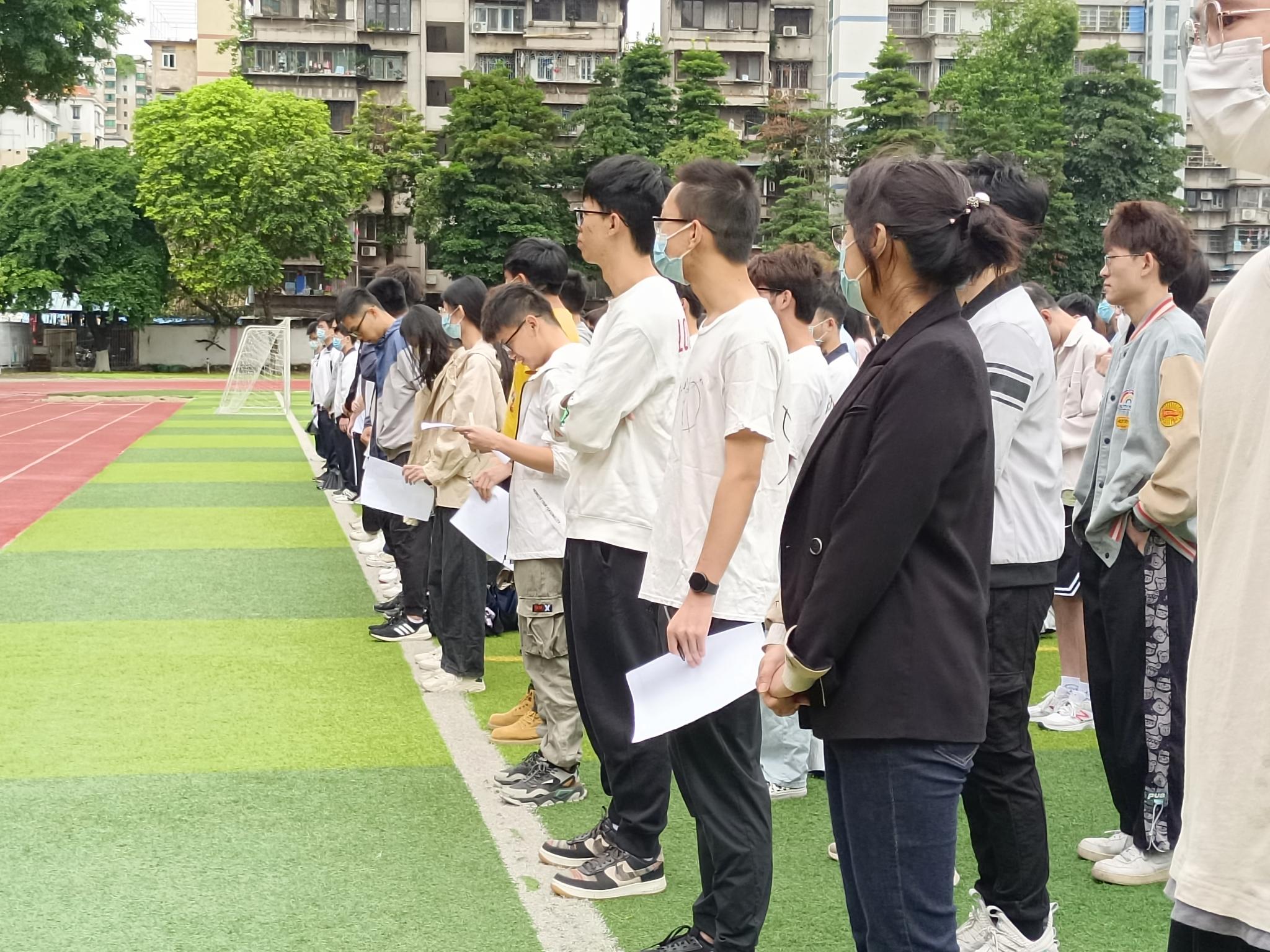 5月16日,我院在海珠校区足球场举行了升旗仪式。辅导员赵丽、田旭峰出席,八一教官团与2019级全体学生参加仪式。