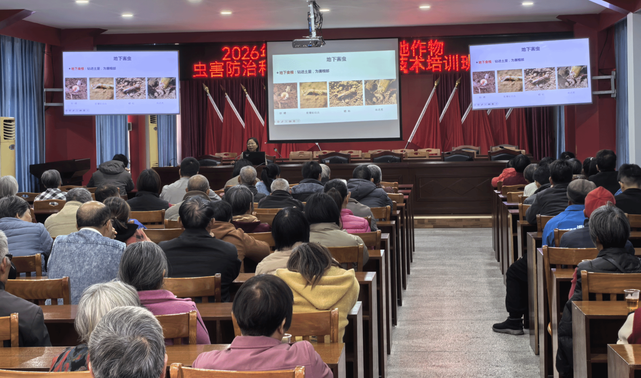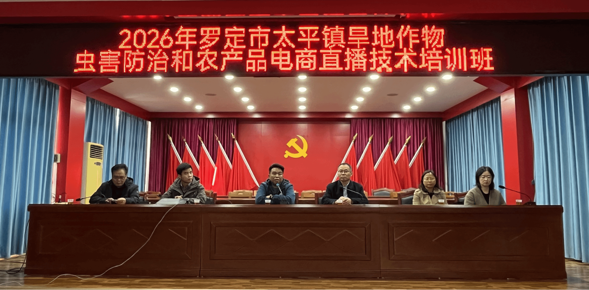 近日,为精准对接太平镇农业发展需求,驻太平镇帮镇扶村工作队与仲恺农业工程学院农村科技特派员团队紧密合作,成功举办了“2026年罗定市太平镇旱地作物虫害防治和农产品电商直播技术培训班”。培训班由特派员团队队长刘双印教授牵头组织,韩群鑫、罗雯、刘新周、高学凯等老师共同参与。太平镇党委副书记、驻镇工作队队长程恒、陈国辉副镇长、王良新副镇长及镇政府相关领导出席活动,全镇80余户种植户积极参加。