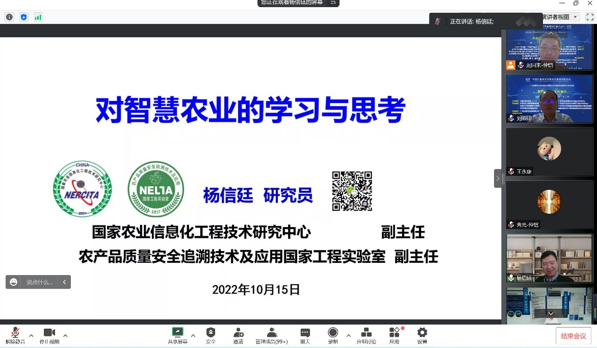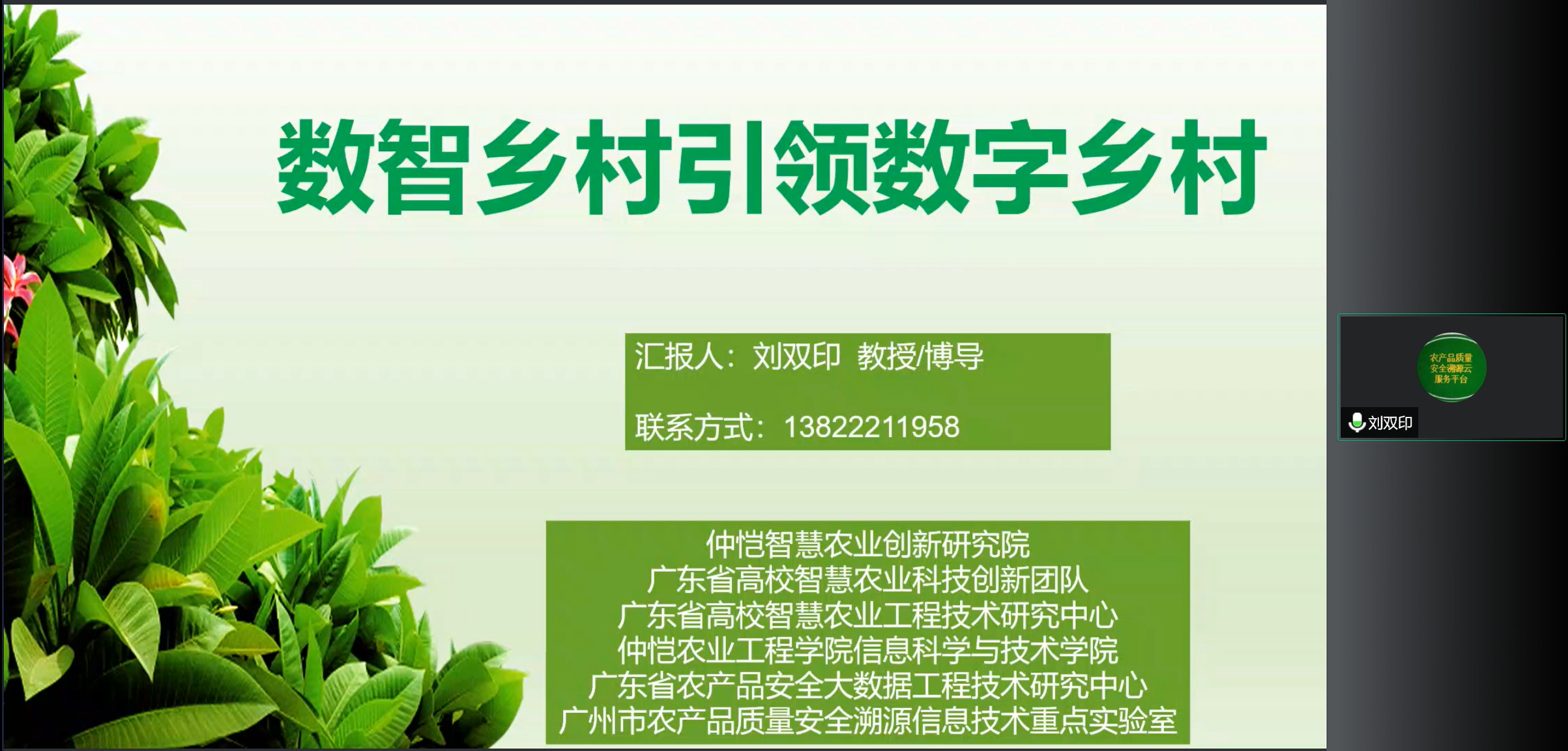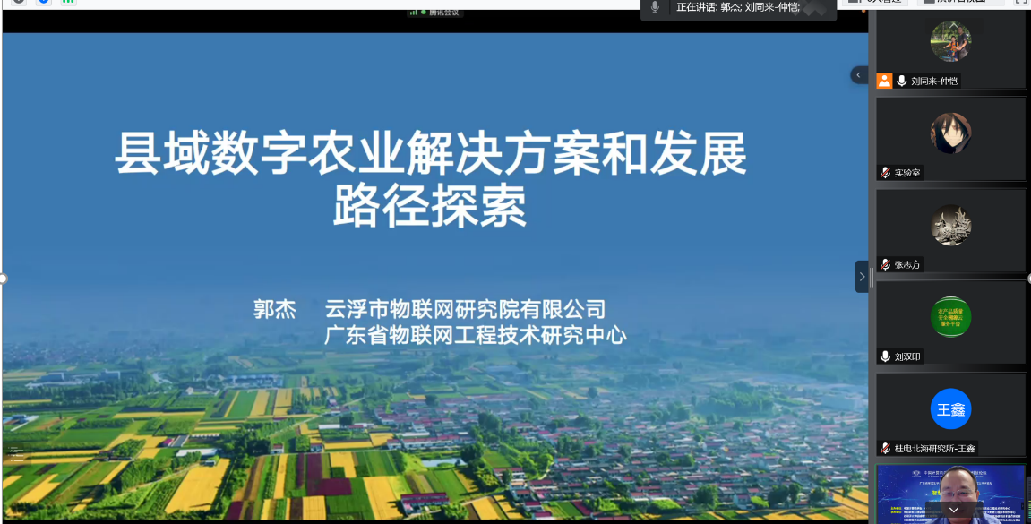 “智慧农业乡村振兴”论坛邀请了国家农业信息技术研究中心副主任杨信廷研究员、上海海洋大学信息学院副院长袁红春教授、桂林电子科技大学北海校区常务副校长王鑫教授、温氏集团云浮市物联网研究院有限公司总经理助理郭杰、仲恺农业工程学院信息科学与技术学院院长刘双印教授作特邀报告。