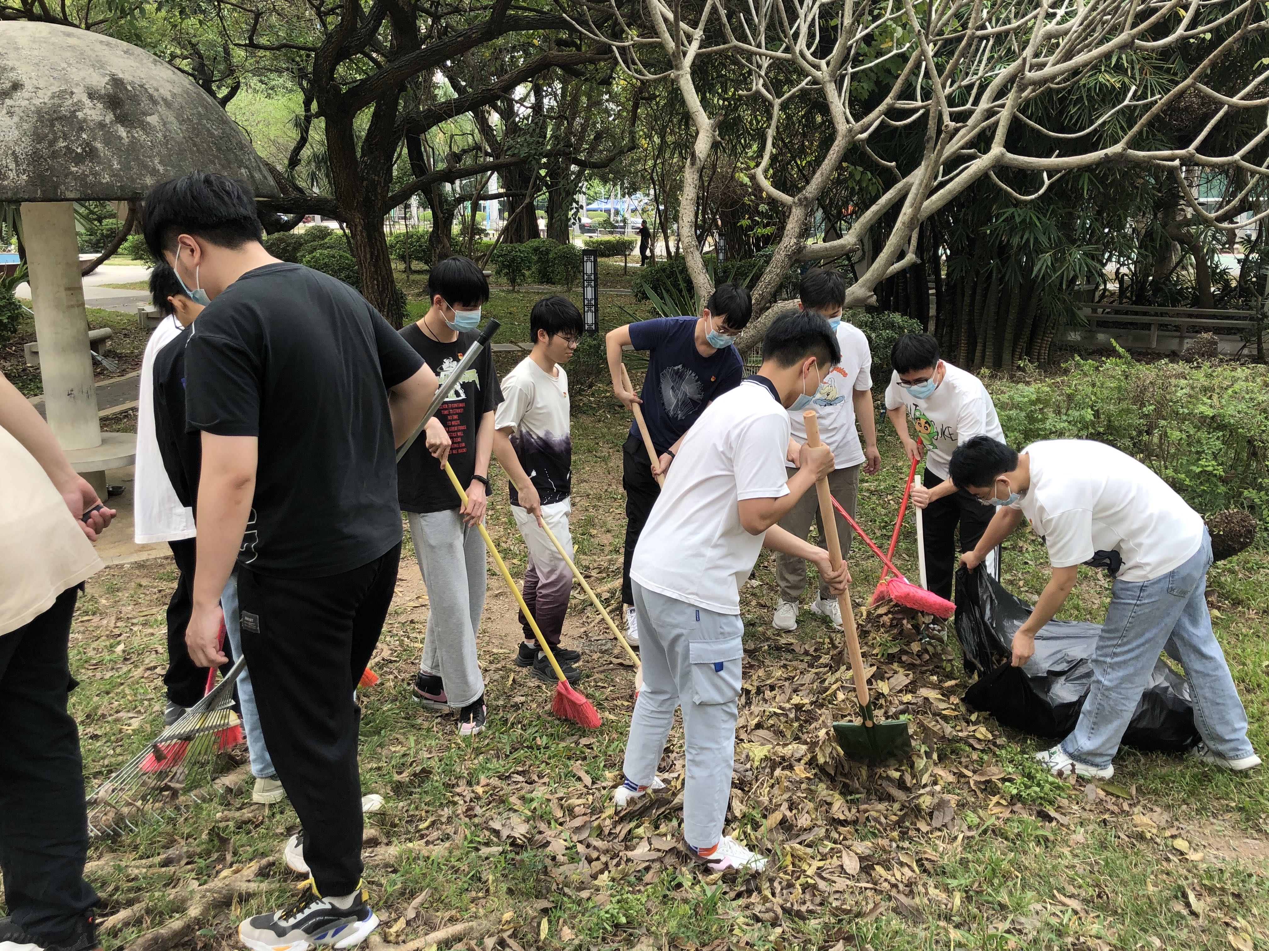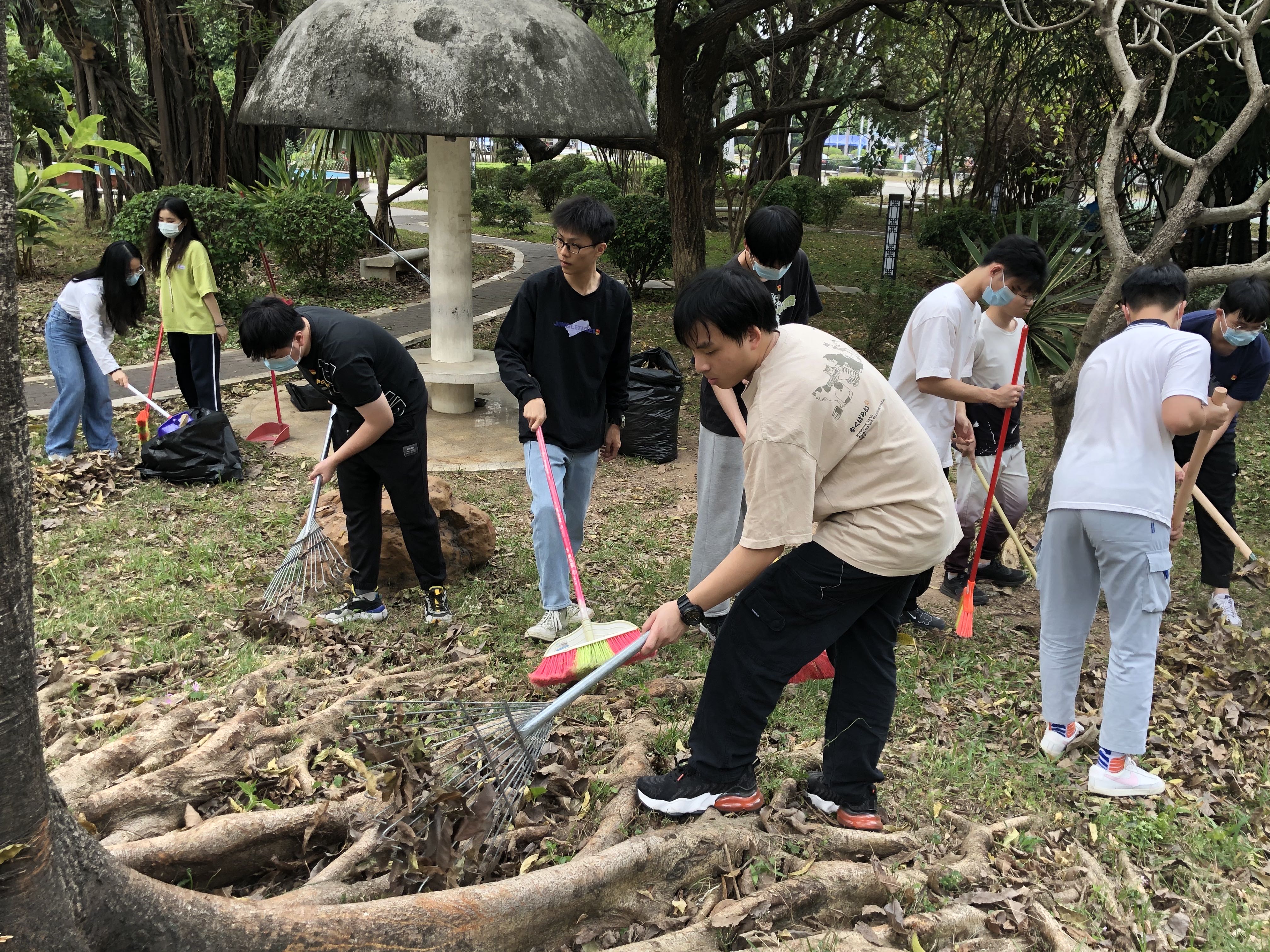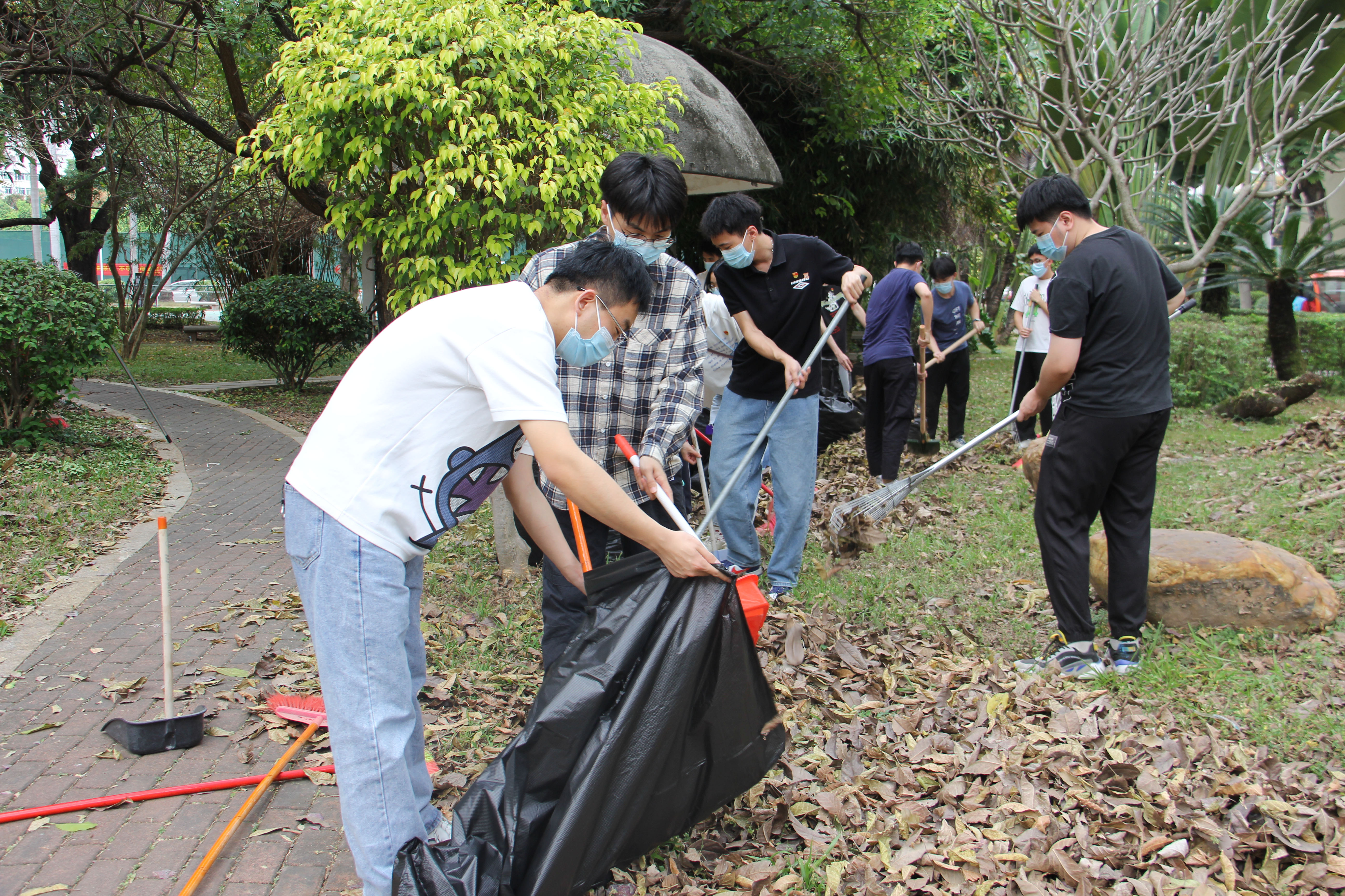 活动现场,学生第一党支部的志愿者李尚柏向大家详细讲解活动步骤和注意事项。随后,志愿者们分工明确、有条不紊,撸起袖子忙活在每个角落,一抹抹“志愿红”穿梭其中,格外耀眼。或手握铁耙翻动落叶、或手拿扫帚清扫枯枝、或手挥铁锹铲除杂草、或手提袋子分装垃圾,志愿者们热情高涨,配合默契,劲往一处使、汗往一处流,享受着劳动的快乐,用实际行动扮靓仲园。