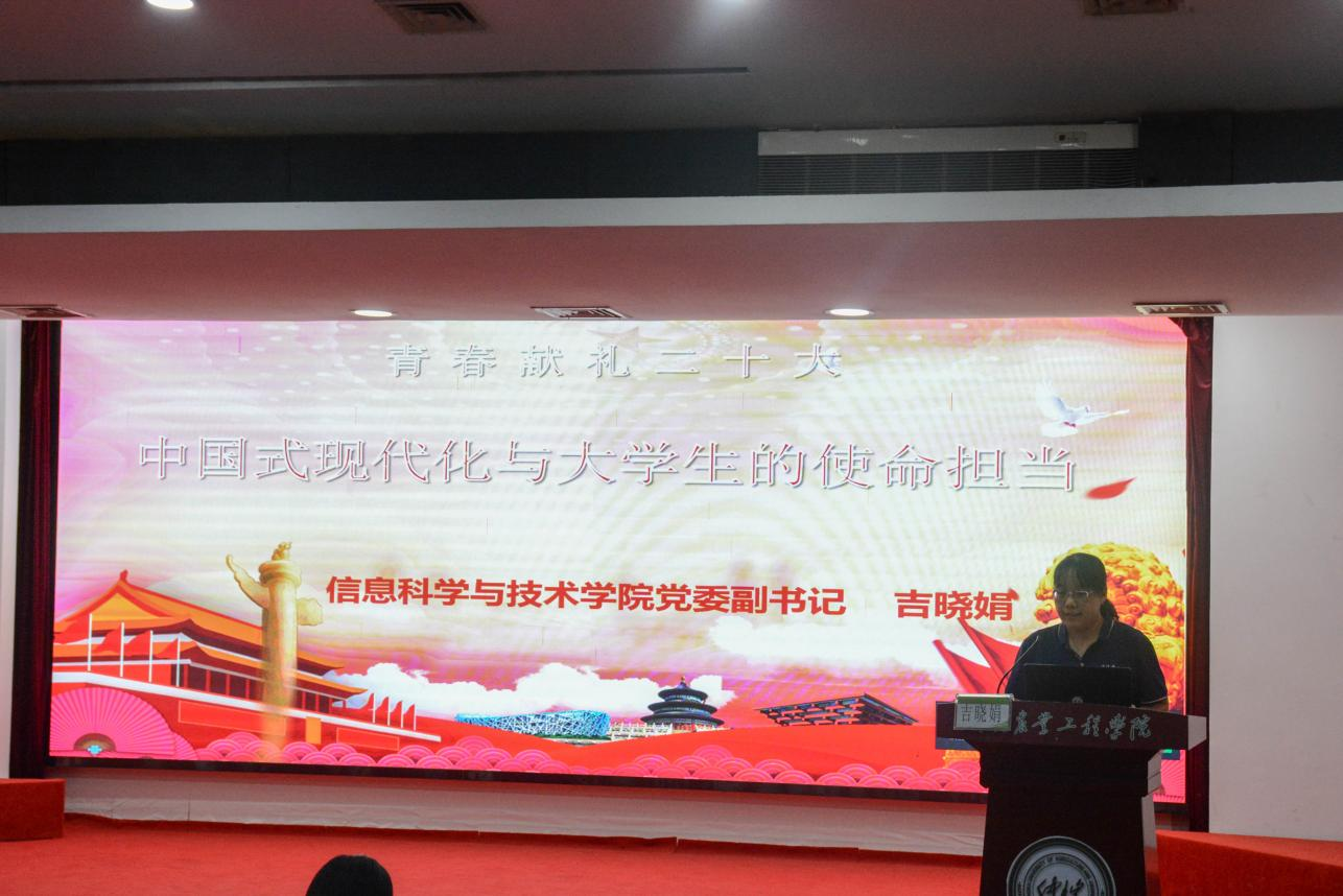 首先,吉晓娟书记讲授了以《中国式现代化与大学生的使命担当》为主题的党课,强调要深刻认识中国式现代化的重大意义,准确把握中国式现代化的中国特色,号召同学们要志存高远,脚踏实地,踔厉奋发,勇毅前行,做新时代有理想敢担当肯奋斗好青年,新时代新征程、青年大有可为,也必将迎来大有作为的大时代。