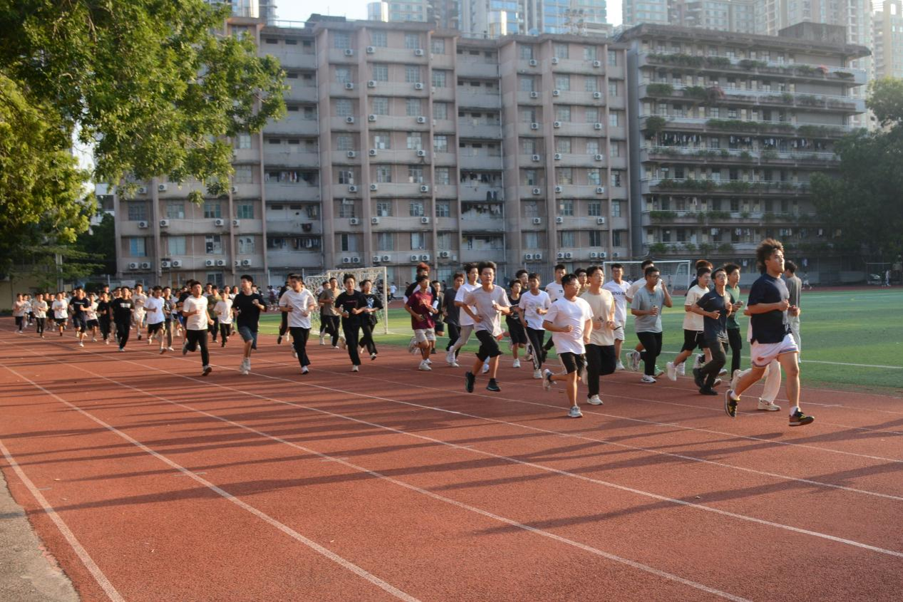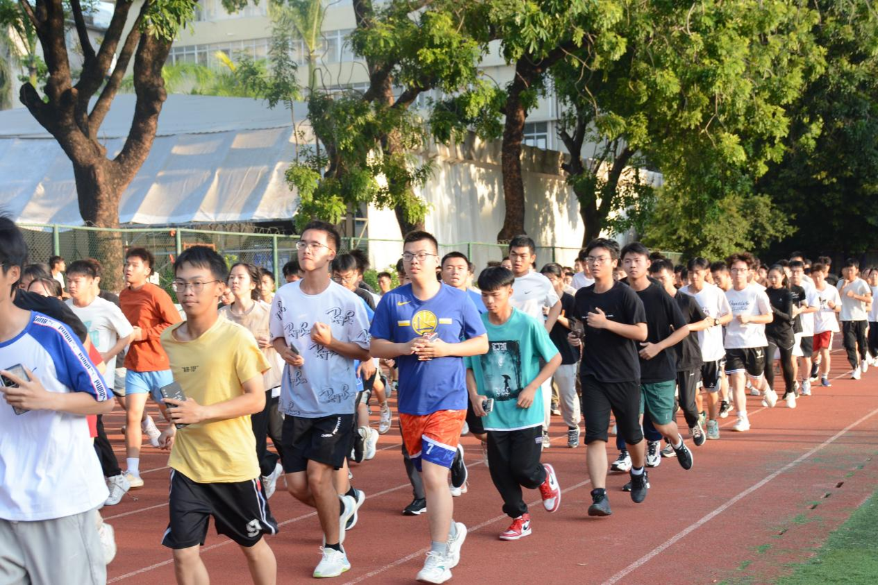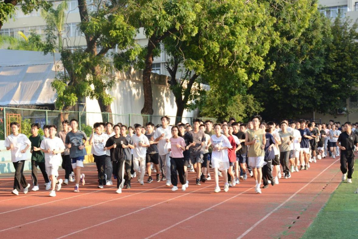 清晨6点多的仲园一片静谧,朝霞初露,晨光熹微。400多名师生排成队列,环绕着操场奔跑,金色的阳光照亮了他们的脸庞。