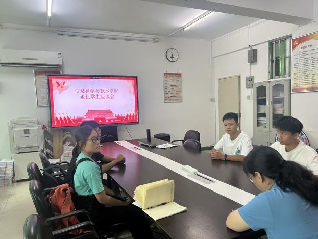 为欢迎2023年秋季退伍复学学生返校,帮助学生尽快转变角色,适应校园生活,10月18日下午,我院在教学楼312会议室召开2023年秋季退伍复学学生系列座谈会。学院党委副书记吉晓娟,辅导员王双星,2023年秋季退伍复学全体学生参加座谈会。会议由王双星主持。