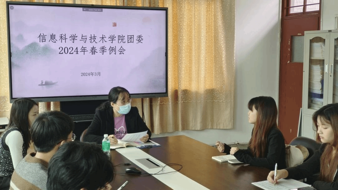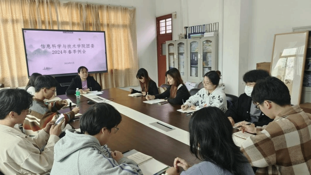 为进一步完善信息科学与技术学院团委队伍管理机制,强化队伍建设,推动新学期工作顺利开展,3月5日,信息科学与技术学院团委在教学楼东802召开了2024年春季学期工作例会。学院党委副书记吉晓娟、团委副书记钟翠,团委主要学生干部参加会议。