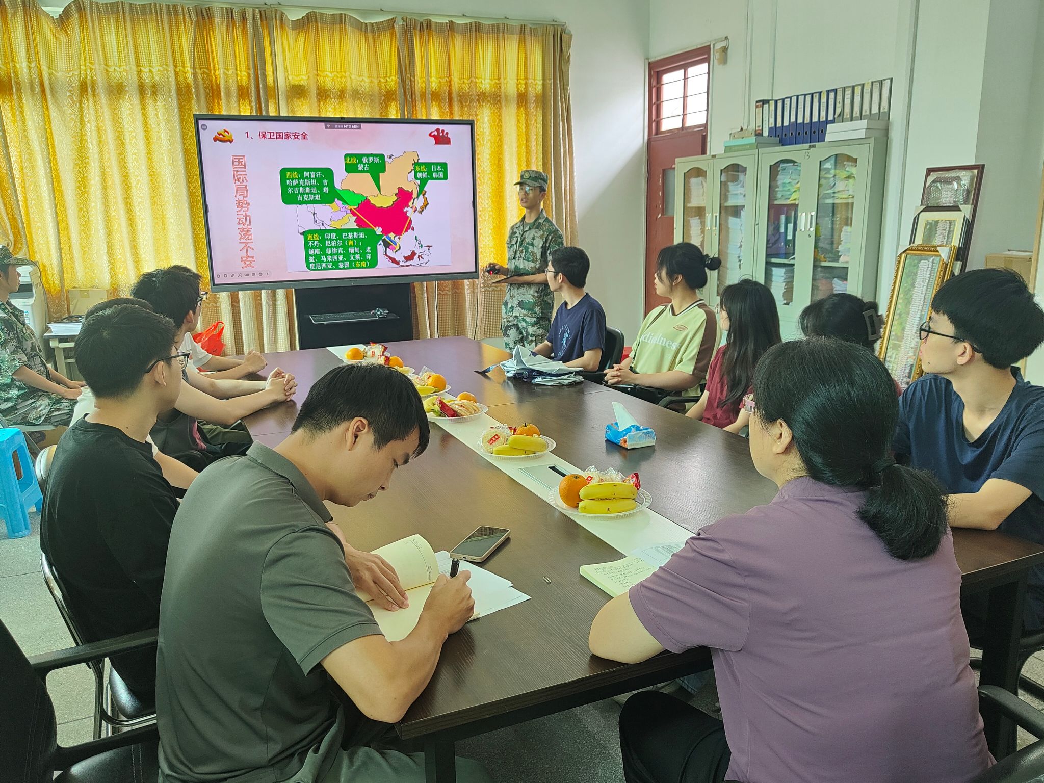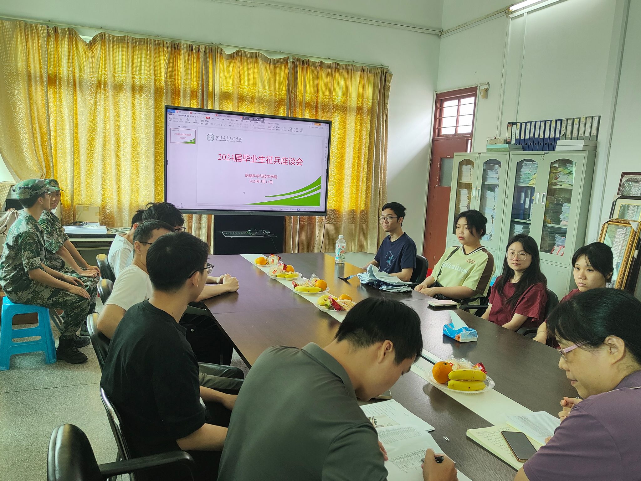为进一步加强国家安全教育,增强学生国家安全及国防教育意识,鼓励广大青年学生奔赴军营、保家卫国,奉献热血青春,信息科学与技术学院共召开三次毕业生征兵座谈会,共有意向参军入伍学生40余人参加。5月15日中午,我院在行政楼东801会议室召开第三次2024届毕业生征兵座谈会。学院党委副书记吉晓娟,辅导员王双星、聂淑玲、许嘉林,以及有参军入伍意愿的毕业生参加座谈会。会议由王双星主持。