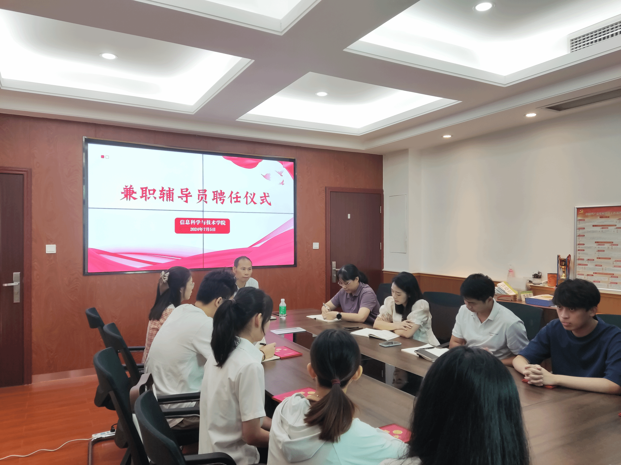 为进一步加强学生思想政治教育,7月5日,信息科学与技术学院举行第二期兼职辅导员聘任仪式,学院党委书记熊友华、副书记吉晓娟出席活动,全体辅导员及新任兼职辅导员参加活动。