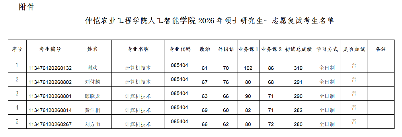 附件:人工智能学院2026年硕士研究生招生考试第一志愿复试考生名单