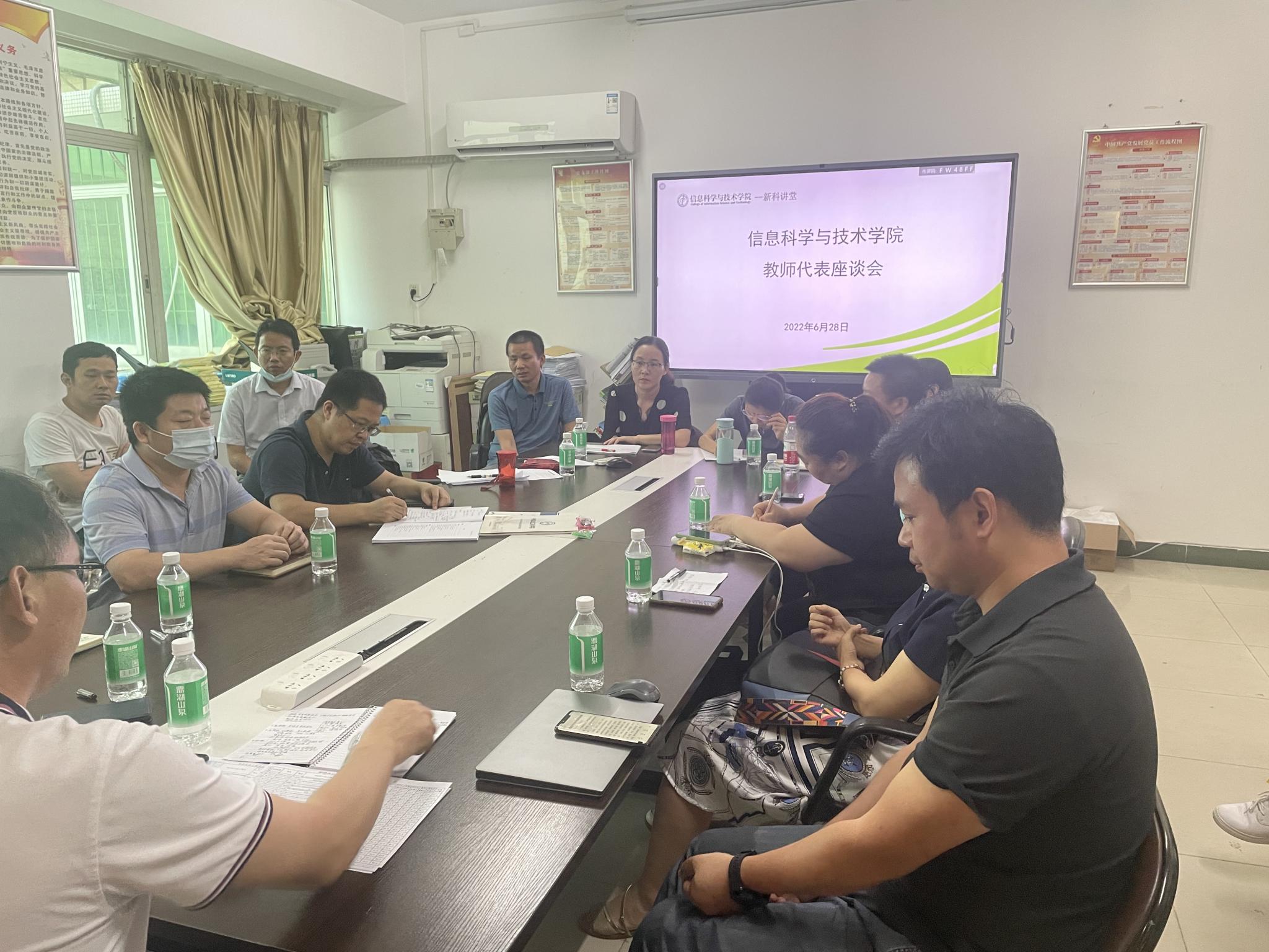 2022年6月28日下午,信息科学与技术学院在学院会议室召开教师代表座谈会。座谈会由学院院长刘双印主持。学院全体班子成员与教师代表亲切交谈。