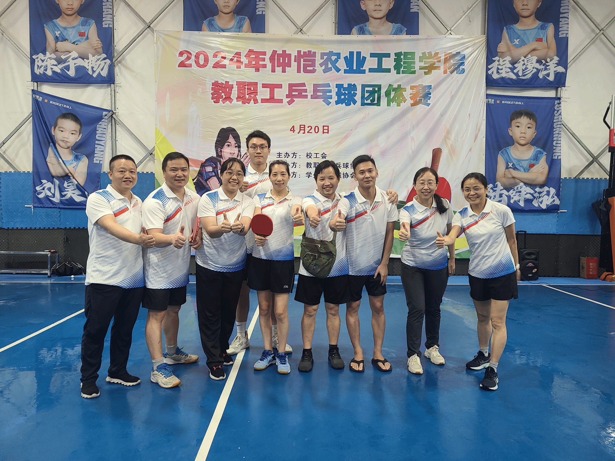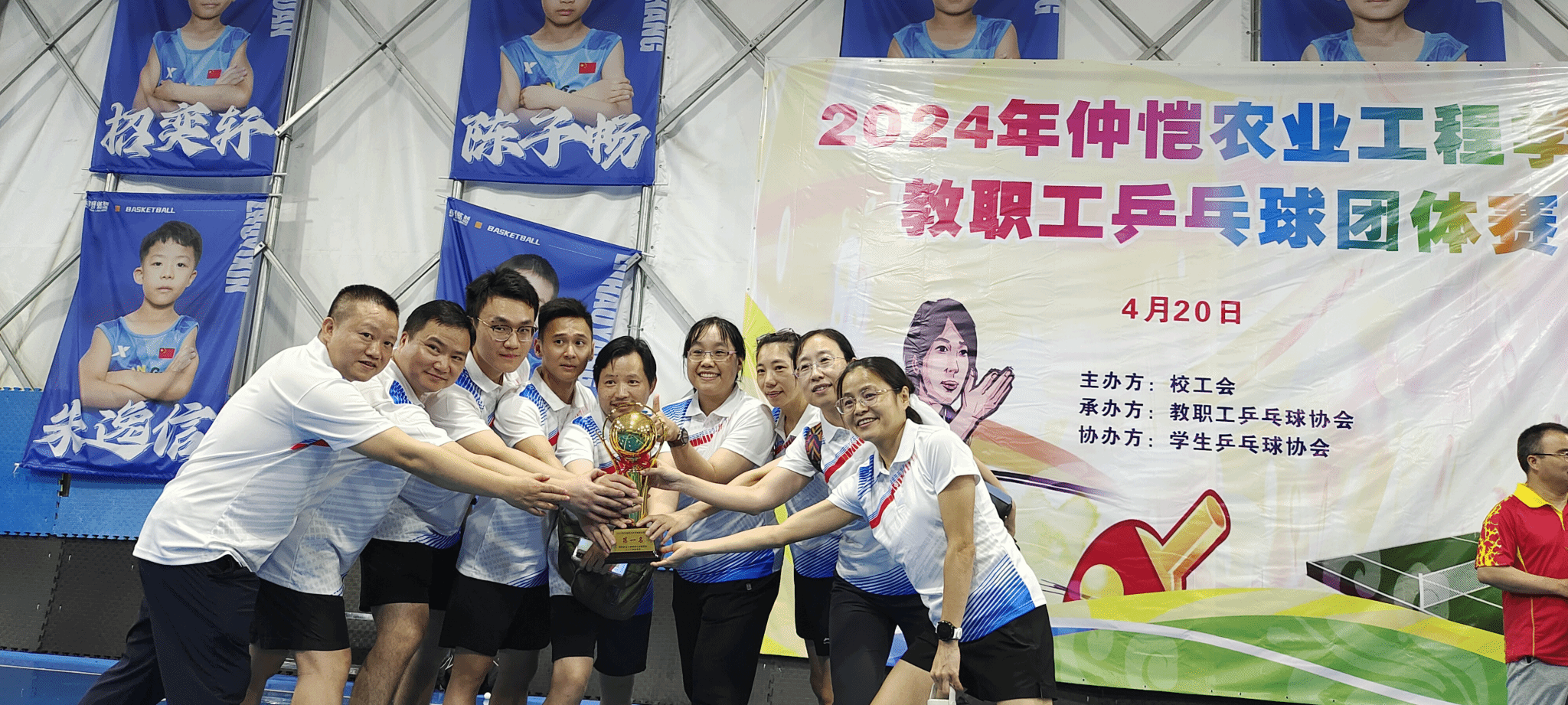 2024年4月20日,由校工会主办的仲恺农业工程学院2024年教职工乒乓球团体赛在体育馆室外场地举行,我院参赛老师们本着“友谊第一,比赛第二”的宗旨,以球会友,经过激烈的角逐,信息科学与技术学院荣获教职工乒乓球团体赛冠军。