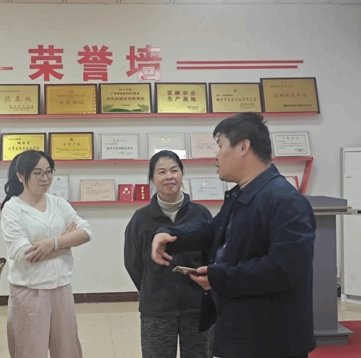 郭建军团队首先与五昌蜜枣基地负责人张细清女士进行深入交流。负责人详细介绍了五昌蜜枣产业的发展现状及面临的挑战,特别是在种植管理、产销对接和品牌建设等方面的技术需求。郭建军副教授表示,团队将依托学校科研优势,结合“五昌蜜枣数字化平台V2.0”项目,为丰顺蜜枣产业提供精准化、智能化的解决方案,助力产业提质增效。
