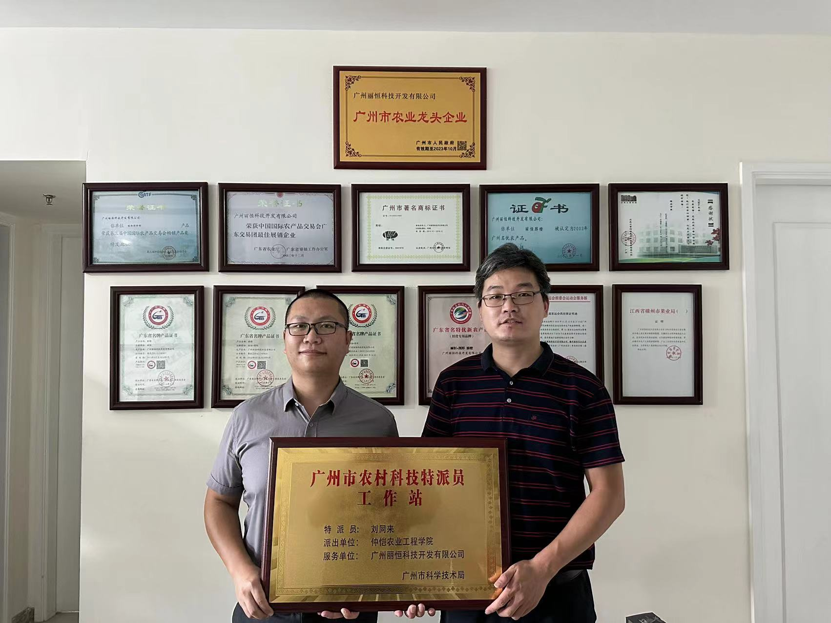 2023年9月24日,仲恺农业工程学院广州市农村科技特派员刘同来和团队成员到服务企业——广州丽恒科技开发有限公司举行了“广州市农村科技特派员工作站”挂牌仪式。